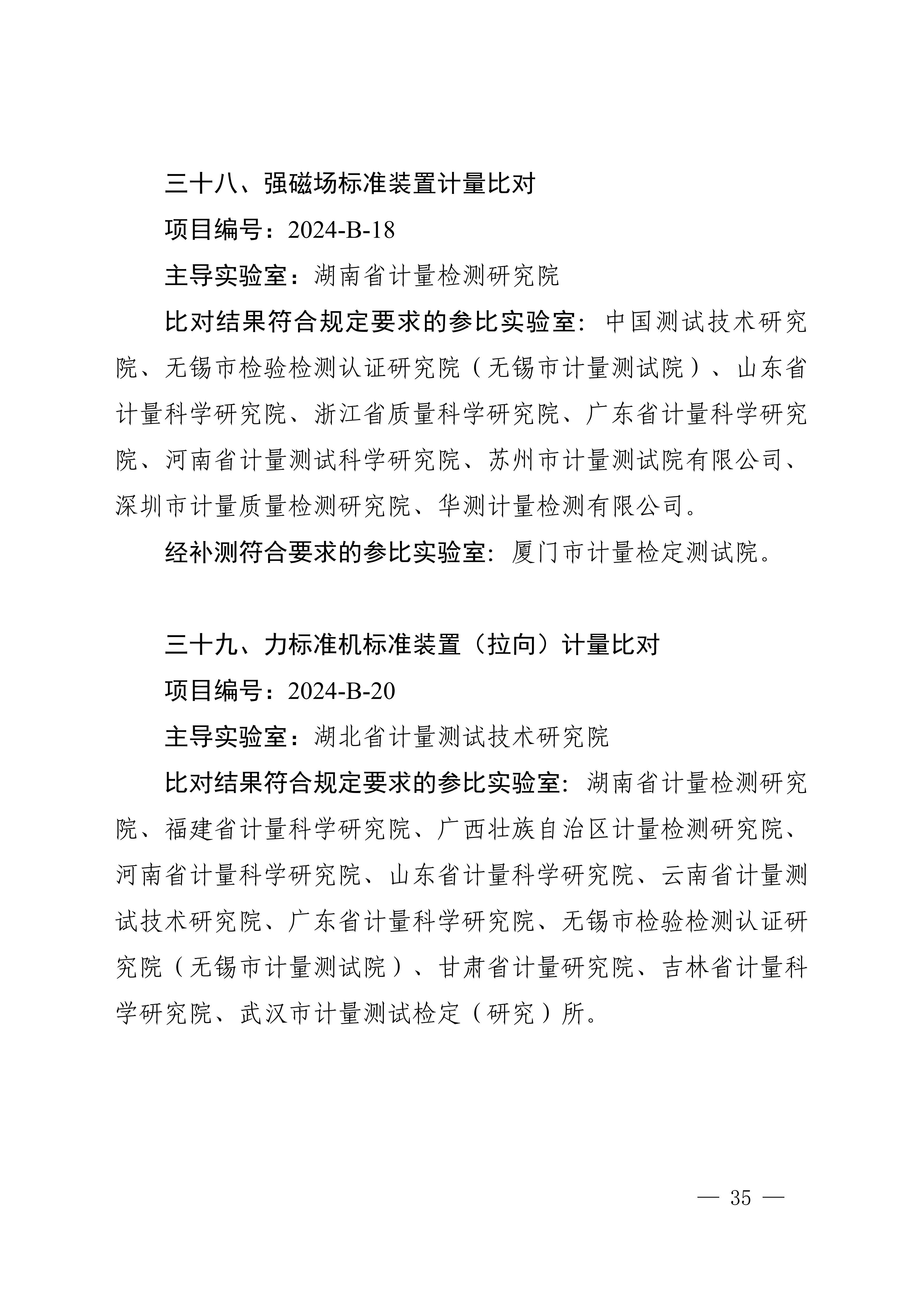 市场监管总局关于 39项国家计量比对结果的通告